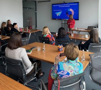 Tematem przewodnim spotkania było budowania kariery zawodowej. Swoją ekspertyzą i doświadczeniem podzieliła się z nami Agnieszka Okońska, MBA, która opowiedziała o roli poznawania siebie i swoich potrzeb, postrzeganiu świata i poszukiwaniu pasji, a to wszystko po to, by rozwijać skrzydła i chronić się przed wypaleniem zawodowym.